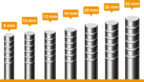 TMT Bars are differentiated from one another on the basics of diameter in which we offer bars ranging from 8 mm to 32 mm making one stop shop for all steel needs.